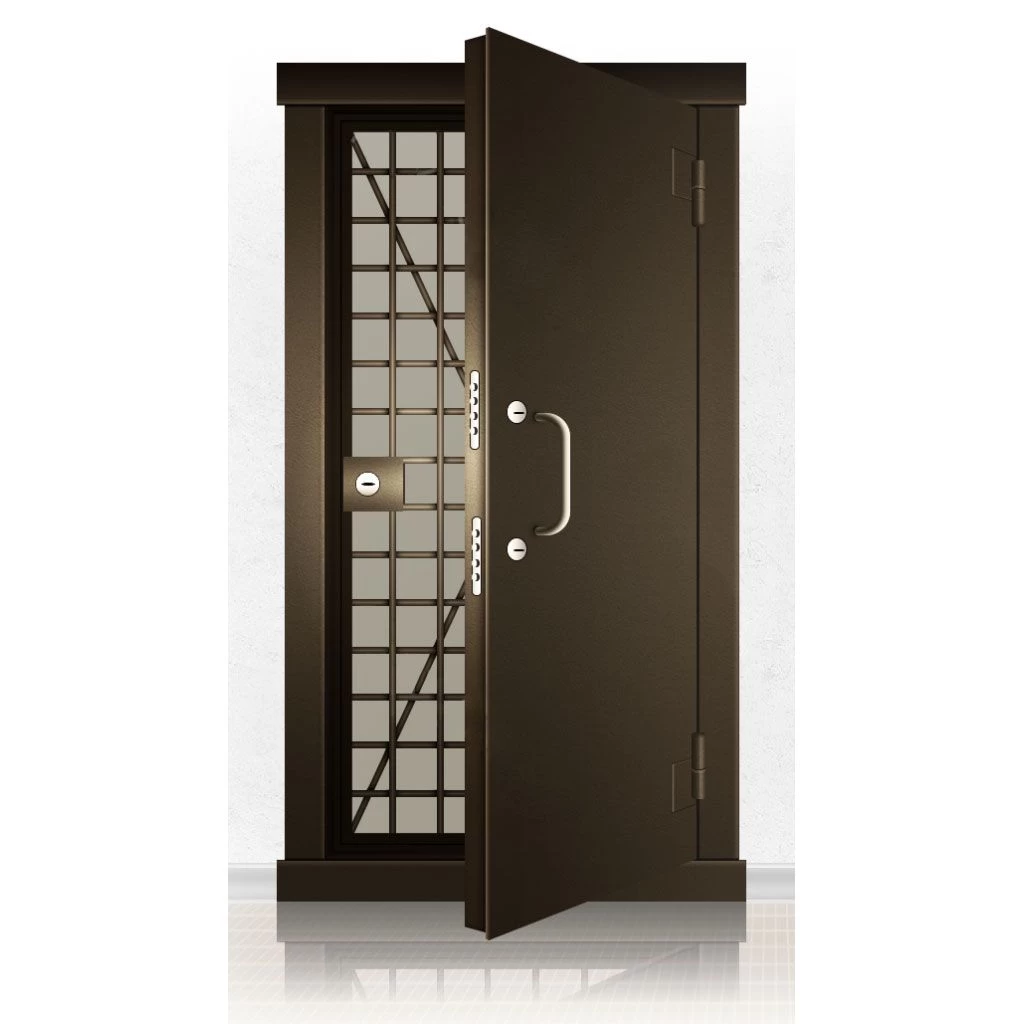 Металлические двери КХО и КХН представляют собой входные блоки, обладающие высоким уровнем взломостойкости и состоят из трех основных элементов: усиленного каркаса, сплошного металлического полотна и решетчатой двери. Дверной блок изготавливается из стального уголка 100*100 мм. Места крепления блока к стене цементируются и закрываются стальными наличниками шириной 40 мм. Крепеж заходит вглубь стены на 80 мм. В конструкции внешней створки монтируются ребра жесткости, для обшивки используется сталь толщиной не менее 3 мм. Внутренняя решетка изготавливается из прутка диаметром 16 мм. Размер ячеек решетки должен составлять не более 15 на 15 см. В точках пересечения прутья надежно приваривают друг к другу. В КХО и КХН необходимо поддерживать определенную температуру и влажность. Для этого внутреннее пространство глухой двери заполняется теплоизоляционным материалом, а по периметру двери приклеивается уплотнитель. Такие двери оборудуются замками с повышенным уровнем взломостойкости. Специализированные двери КХО и КХН в Клину могут быть оснащены сигнализацией, в конструкции могут быть проушины для навесного замка и элементами для опечатывания. Если идет речь о двери в комнату хранения оружия, в створке оборудуется окно для выдачи оружия и спец. средств, которое накрывается стальной дверцей.
