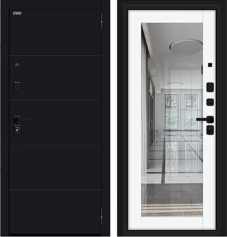 Надежная входная Дверь Браво Флэт/SBlack Black Shell/White Silk премиум класса по цене 38 530 руб. Большая толщина стали защитит от проникновения в ваш дом, квартиру или коттедж. Используется очень качественная фурнитура: замки, цилиндры, ручки, защелки. Покрытие и отделка двери изготовлено под внимательным контролем производителя. Дверь имеет долгий срок службы и гарантию.