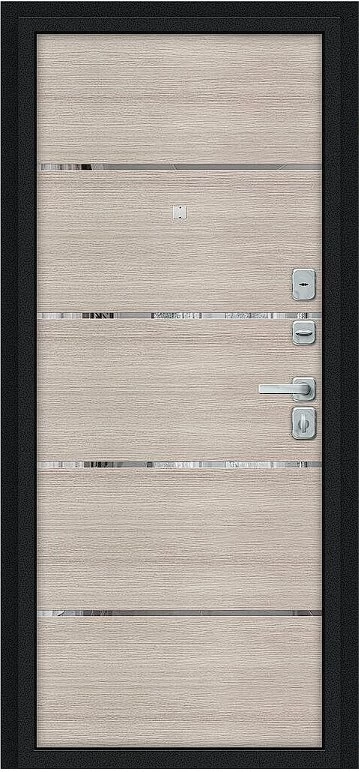 Дверь Браво Лайн/BChrome Букле черное/Cappuccino Melinga среднего ценового диапазона. Стоит дверь 29 000 руб. и это отличное соотношение цены и качества. Модель подойдет для установки, например в новостройку. Прослужит долго и будет надежной защитой вашей квартиры или дома.