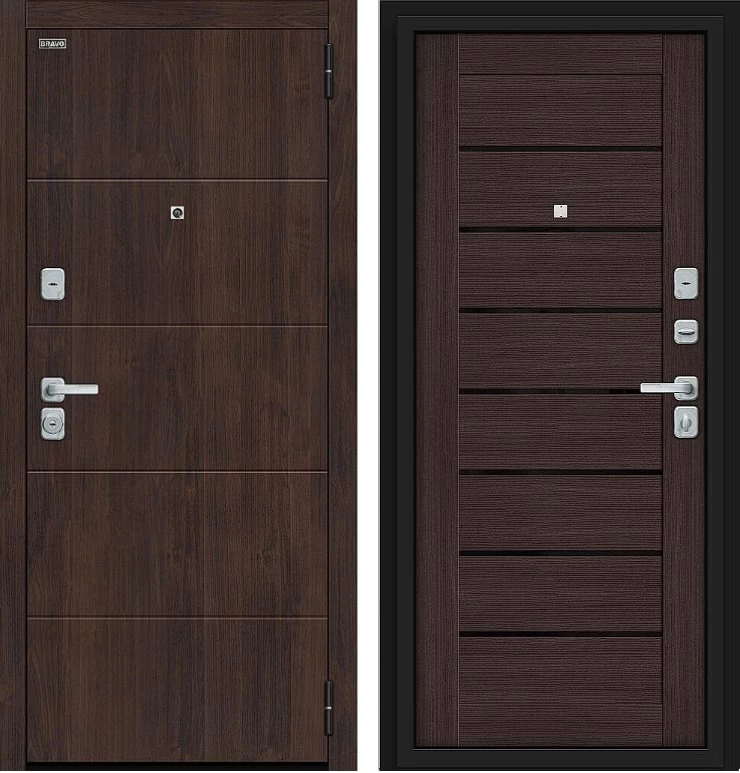 Надежная входная Дверь Браво Прайм/BChrome Almon/Wenge Melinga премиум класса по цене 35 500 руб. Большая толщина стали защитит от проникновения в ваш дом, квартиру или коттедж. Используется очень качественная фурнитура: замки, цилиндры, ручки, защелки. Покрытие и отделка двери изготовлено под внимательным контролем производителя. Дверь имеет долгий срок службы и гарантию.